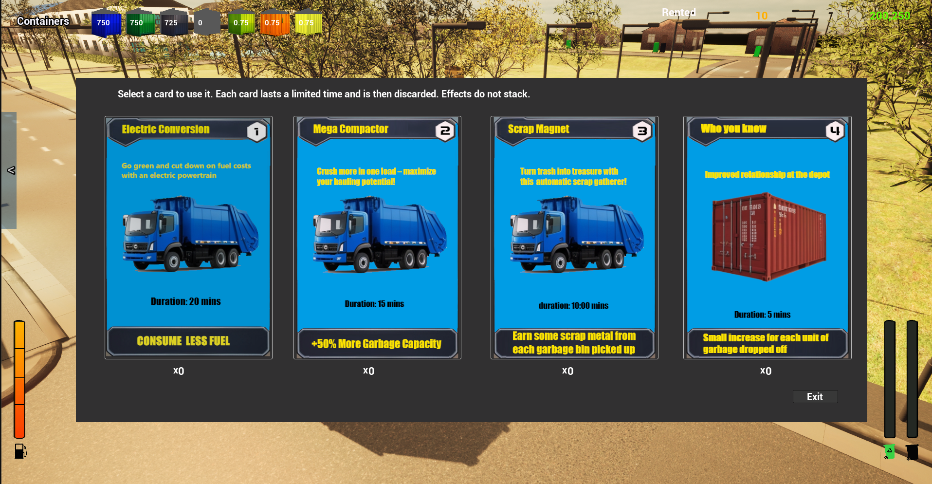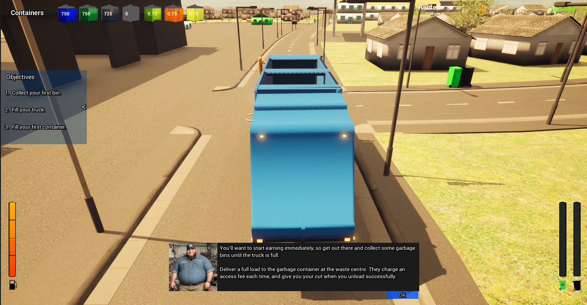 Ideas include having items like cranes to collect garbage from scrapyards, and ships in a port to trawl the sea for garbage, and an area only accessible via purchasing a road sweeper van. That way the player has a variety of vehicles to play in and strive to obtain.